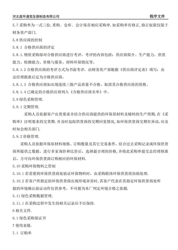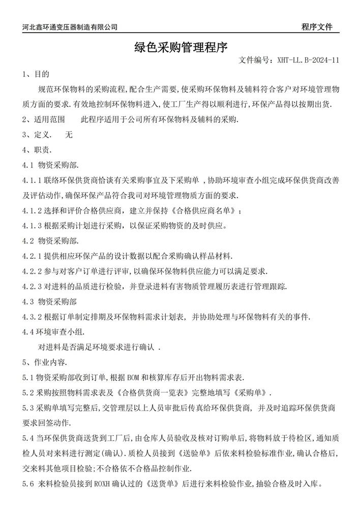 绿色采购管理程序文件